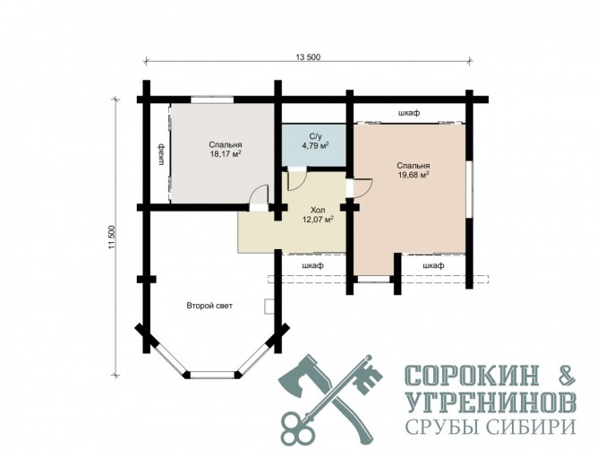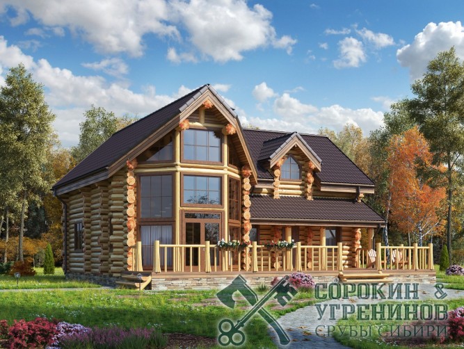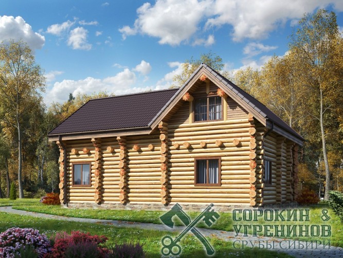 Сруб дома рубленый из бревна кедра диаметром 280мм, рубка сруба вручную в русскую чашу окорка бревна скобелем, размер сруба по осям 11,5х13,5м, общая площадь дома 194м2, объём бревна в срубе 160м3. Большой двухэтажный дом с эркером и вторым светом, удобная планировка, индивидуальный проект разрабатывался с заказчиком для круглогодичного проживания. Строительство сруба и установка на участок была летом 2015 года в Новосибирске в поселке Ваганов Парк.