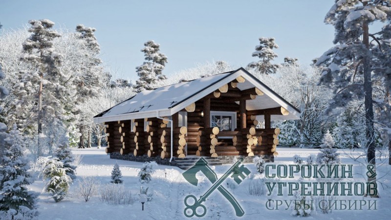 Сруб бани рубленый из бревна кедра диаметром 280-320мм, площадью 31,9м2. Размер сруба 5,2х7,6 метров по осям. Удобная планировка бани, парная, душевая, комната отдыха, санузел, тамбур, терраса. Сруб рубленый вручную в русскую чашу (охлоп), бревна окоренные гидро-окоркой (водой под высоким давлением), а так, же это можно сделать скобелем или лопатой, или строганное рубанком. Объем бревна в срубе 44,1м3. Баня была установлена в Новосибирской области в поселке Мочище в 2013 году.