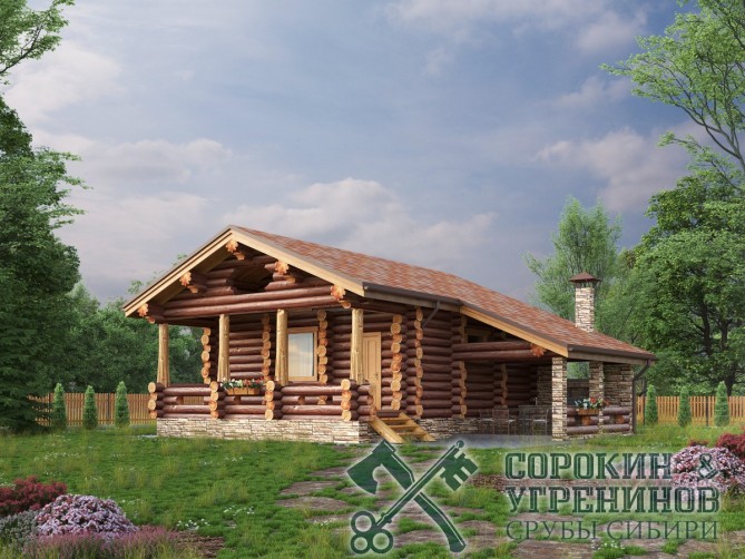 Сруб бани рубленый из бревна кедра диаметра 280мм площадью 76,3м2. Размер сруба 9,8х10,9 метров по осям. Баня с барбекю, есть терраса, прихожая и тамбур. Парная, мойка, комната отдыха и сунузел. Сруб рубленый вручную в русскую чашу (охлоп), брёвна окоренные гидро-окоркой (водой под высоким давлением), а так, же это можно сделать скобелем или лопатой, или строганное рубанком. Объем бревна в срубе 68м3. Баня установлена в Новосибирской области в 2014 году в поселке Ваганов Парк.